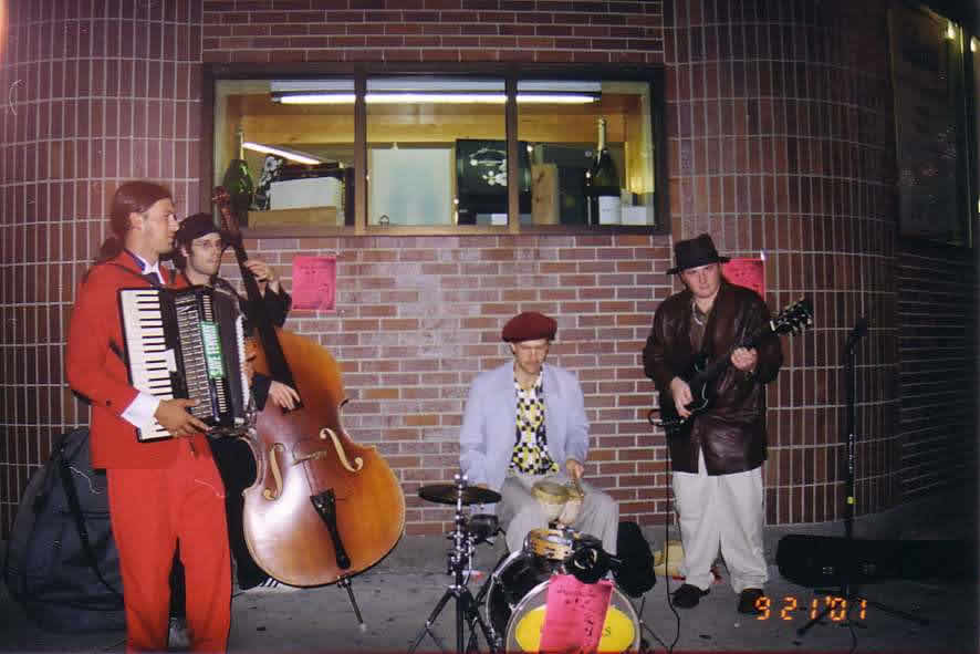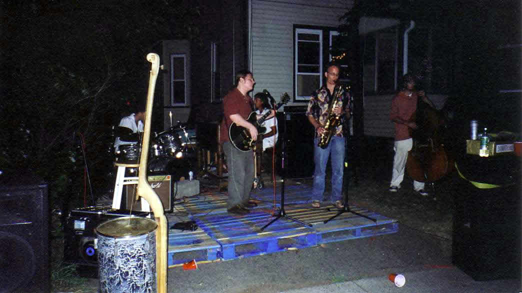 of acoustic mayors playing on the streets of Allston, 2001 the